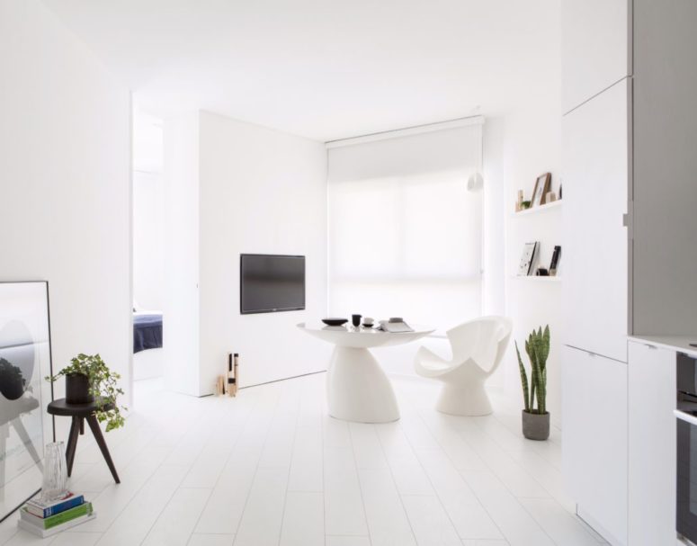 - This small all-white apartment is done in minimalist style and features everything necessary for the owners.